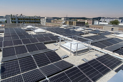 Die 130‘000 kWh Energie, die unsere eigene Fotovoltaikanlage pro Jahr produziert, werden direkt in unserem Gebäude genutzt, um unseren Strombedarf zu decken. Durch die Nutzung von Solarenergie können wir unseren CO2-Ausstoss erheblich reduzieren. Zudem sind wir dabei fortlaufend unsere Firmenflotte auf Elektrofahrzeuge umstellen, die an den eigenen Ladestationen mit Solarstrom versorgt werden.
